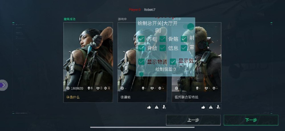 下载科技三角洲HabHak辅助功能简介:1.透视功能:方框骨骼 敌方名字 血条显示 手持武器2.透视功能:人机分辨 护甲距离 危险预警 透视距离3.物品分类:显示物品 显示陷阱 过滤物品 过滤品质4.物品分类:显示尸包 尸···...